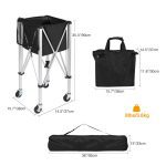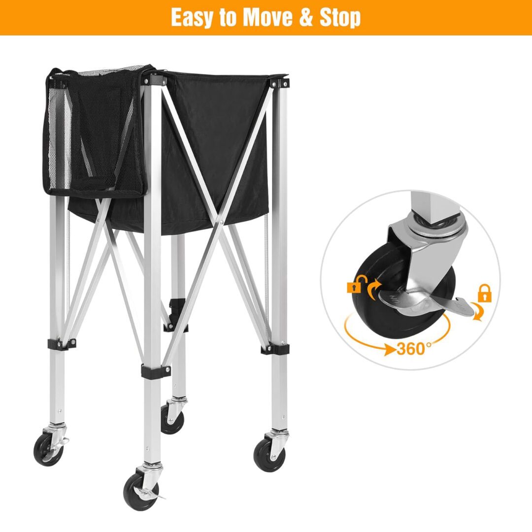 Fácil de usar: cuenta con 4 ruedas giratorias de 360°. Las 2 ruedas delanteras tienen freno, lo que permite mover y detener el carro con facilidad. La tapa superior de red con cierre evita que las pelotas se salgan al moverlo.