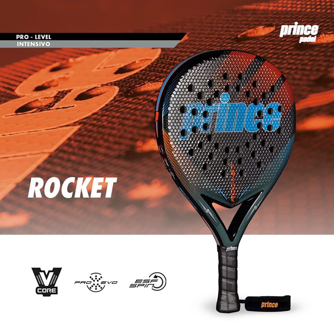 La pala Prince Rocket está diseñada para ofrecer el máximo equilibrio en el juego. Tiene un punto dulce amplio, el cual mejora la presión en cada golpe de la bola. Pala de gama alta con la última tecnología desarrollada por Prince para obtener el mejor rendimiento. Cuenta con una nueva goma EVA BALANCE para lograr un mayor equilibrio de potencia. Cara texturizada ESF, distribución agujeros PRO EVO. Muñequera P-WRISTBAND.